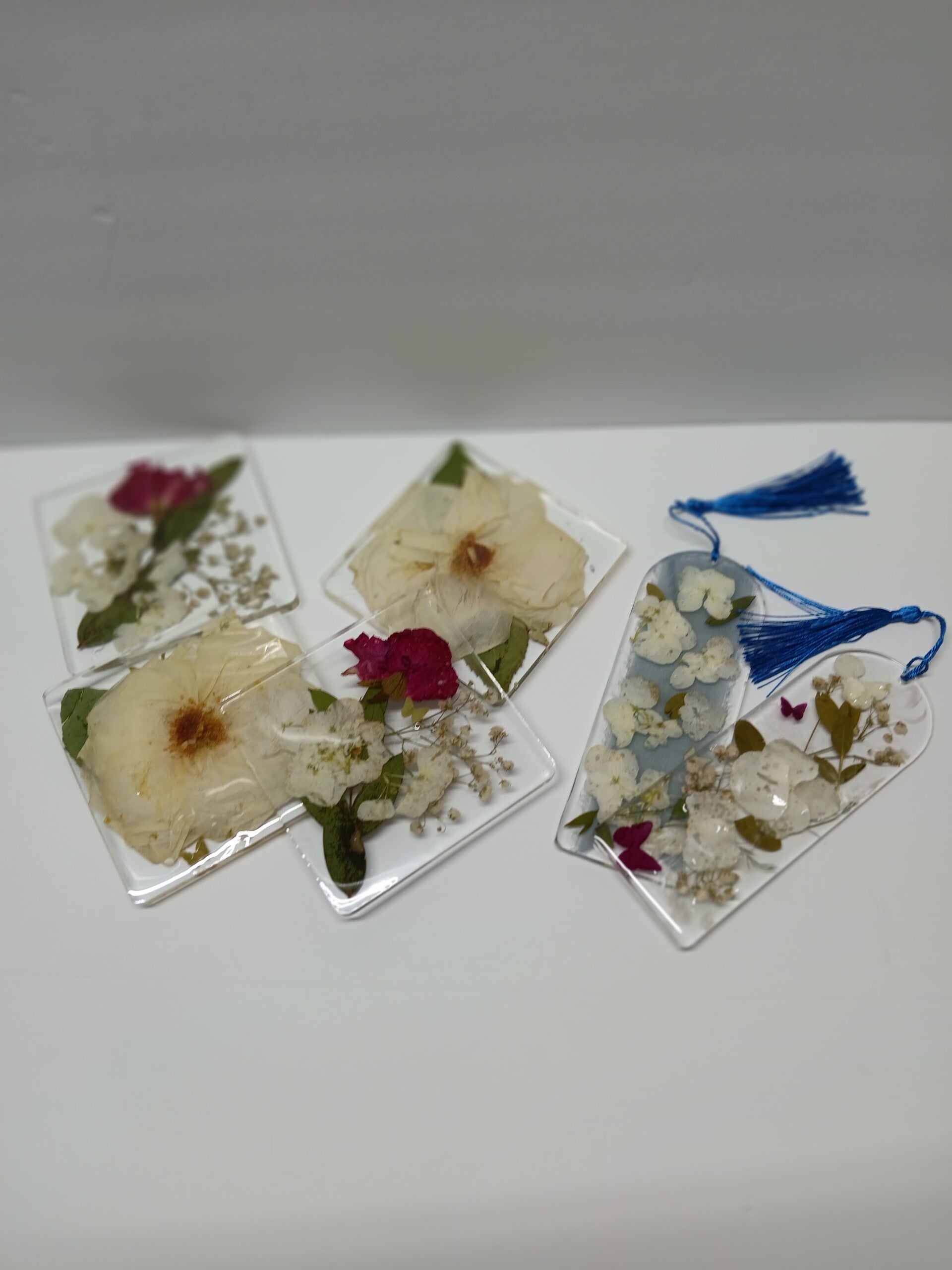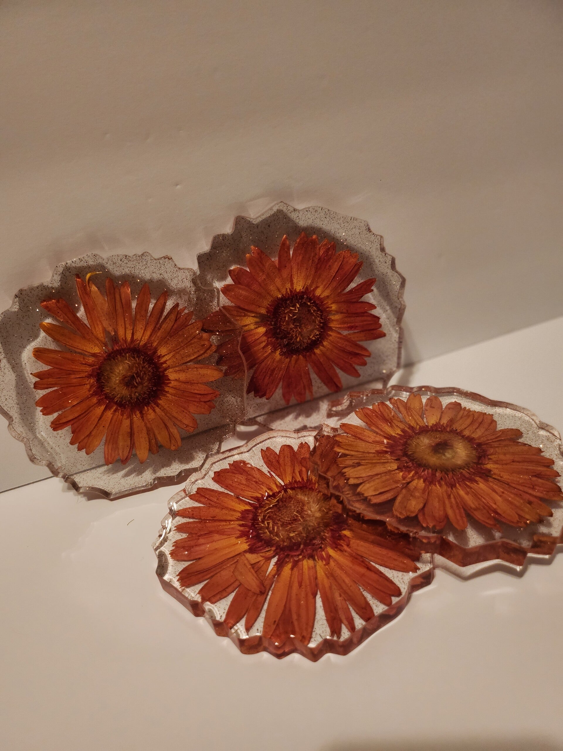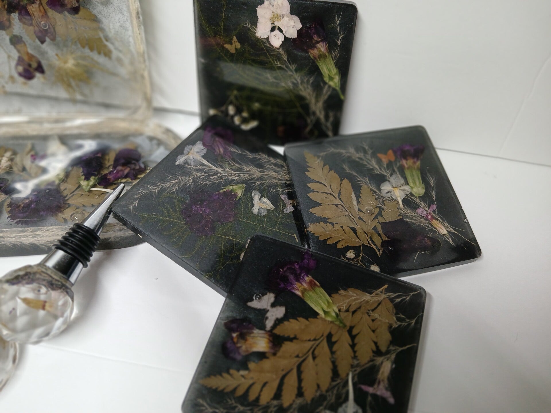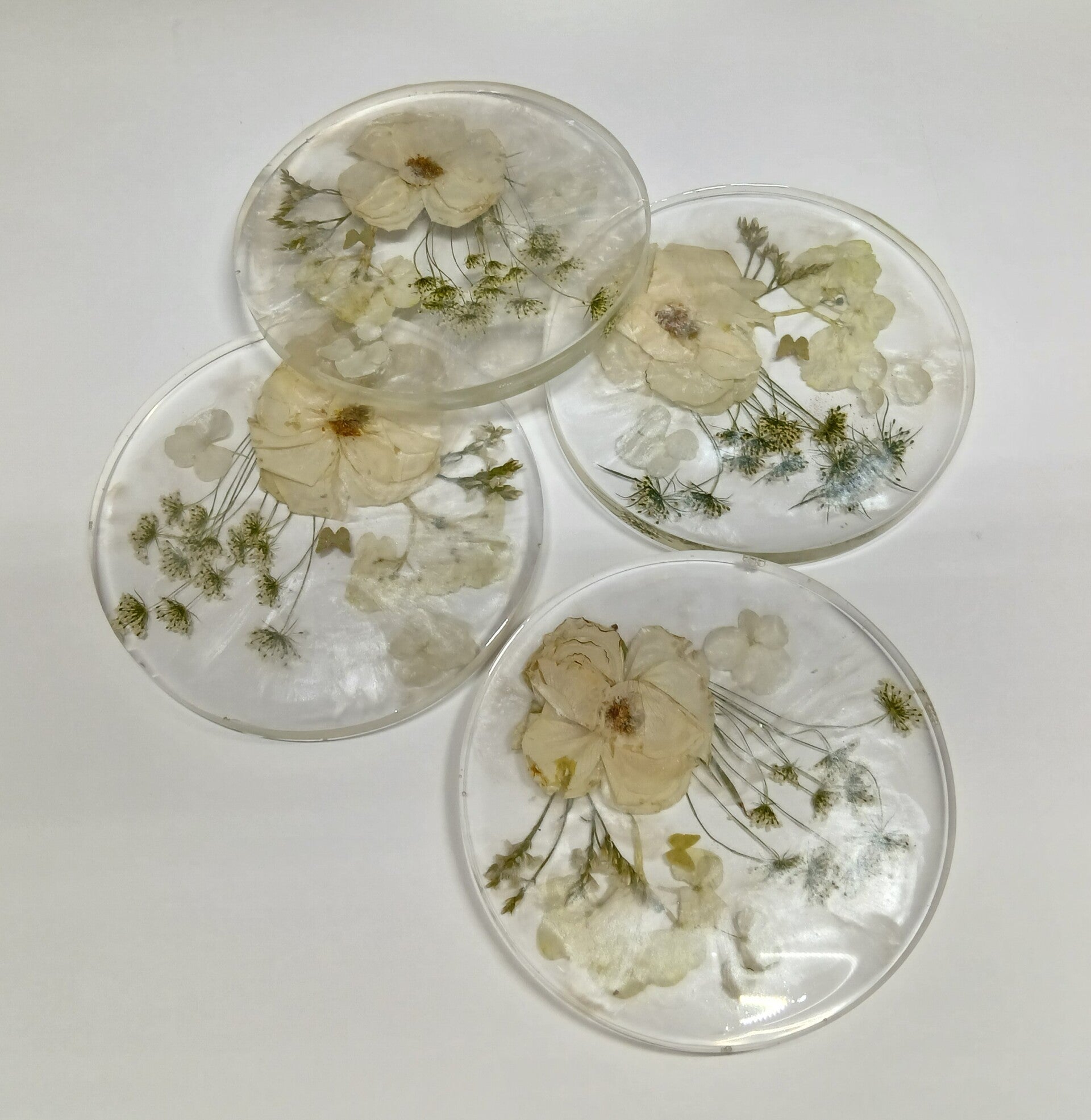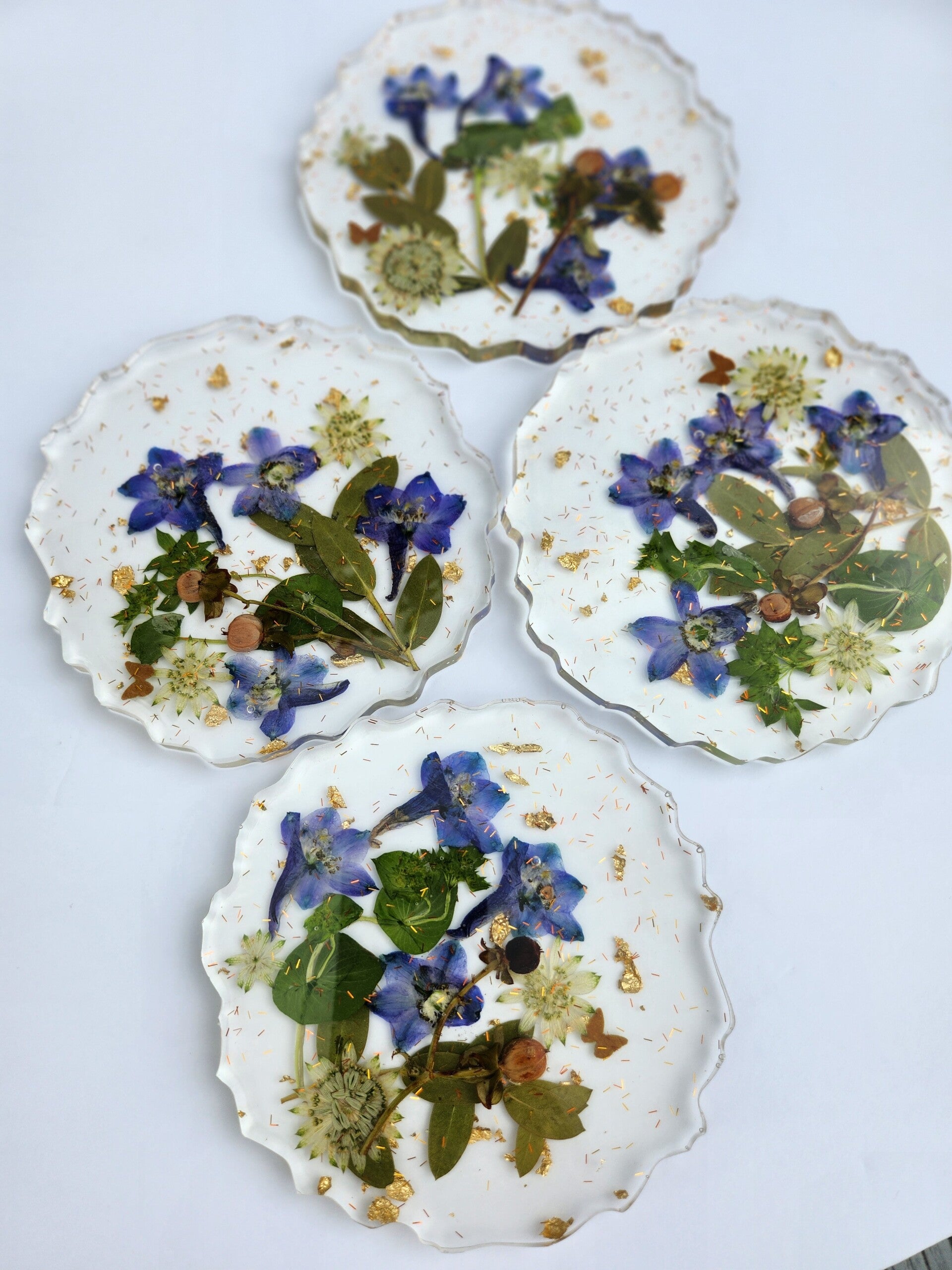 Florals for Coasters are flat dried and preserved in resin with choice of shape and/or edging.