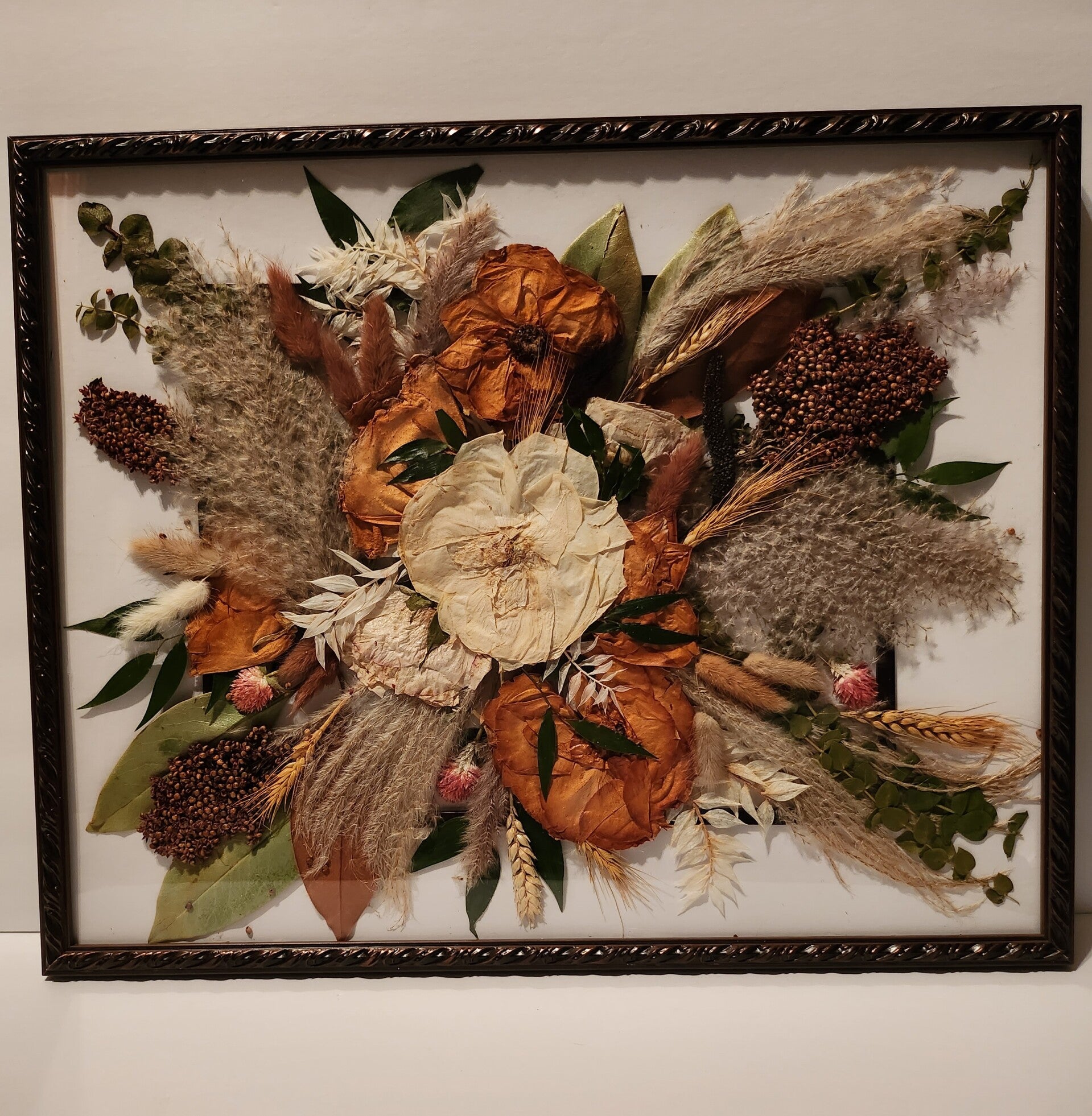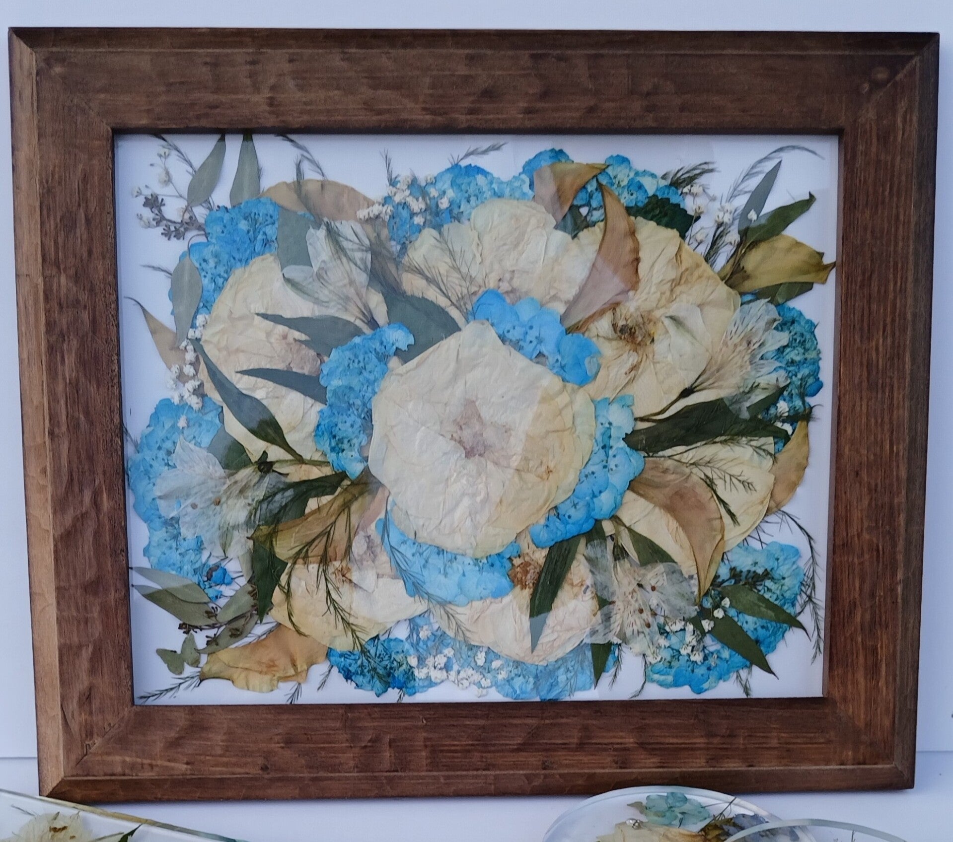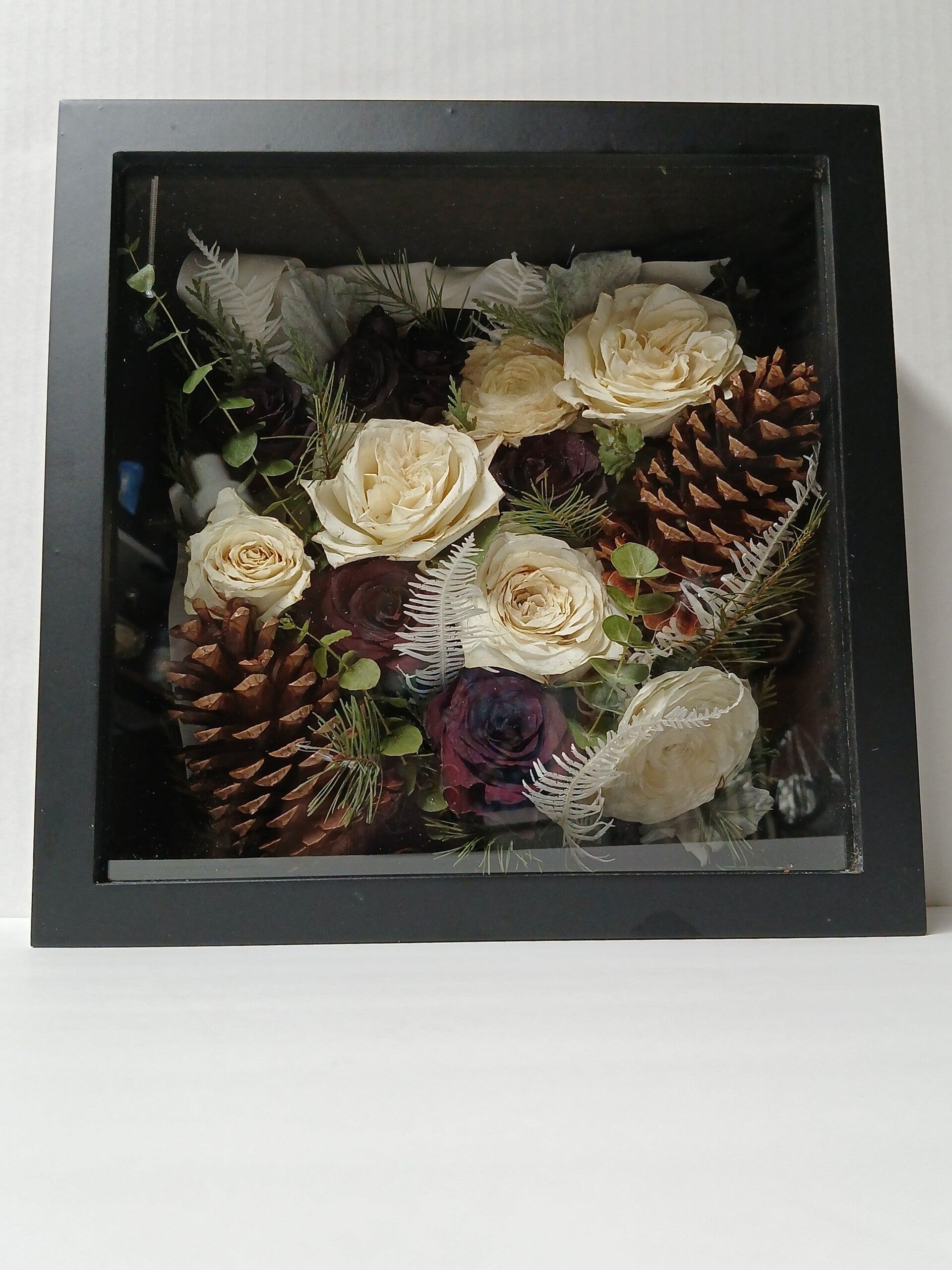 Framed Wedding Florals are flat dried and preserved in a frame of your color choice.