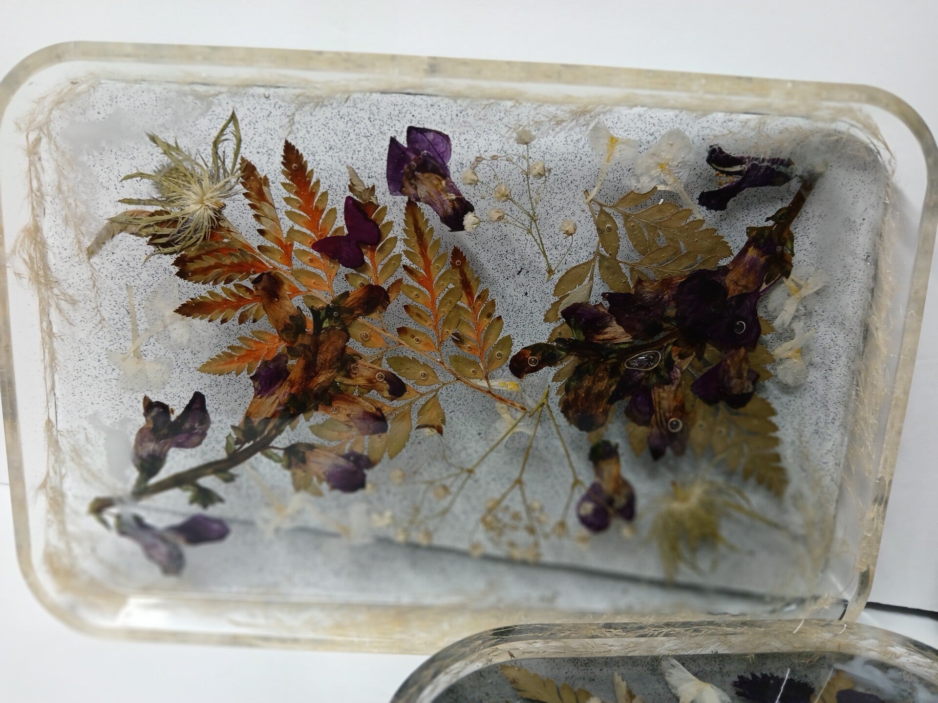 Florals for Dishes are flat dried and preserved in resin with choice of colors.