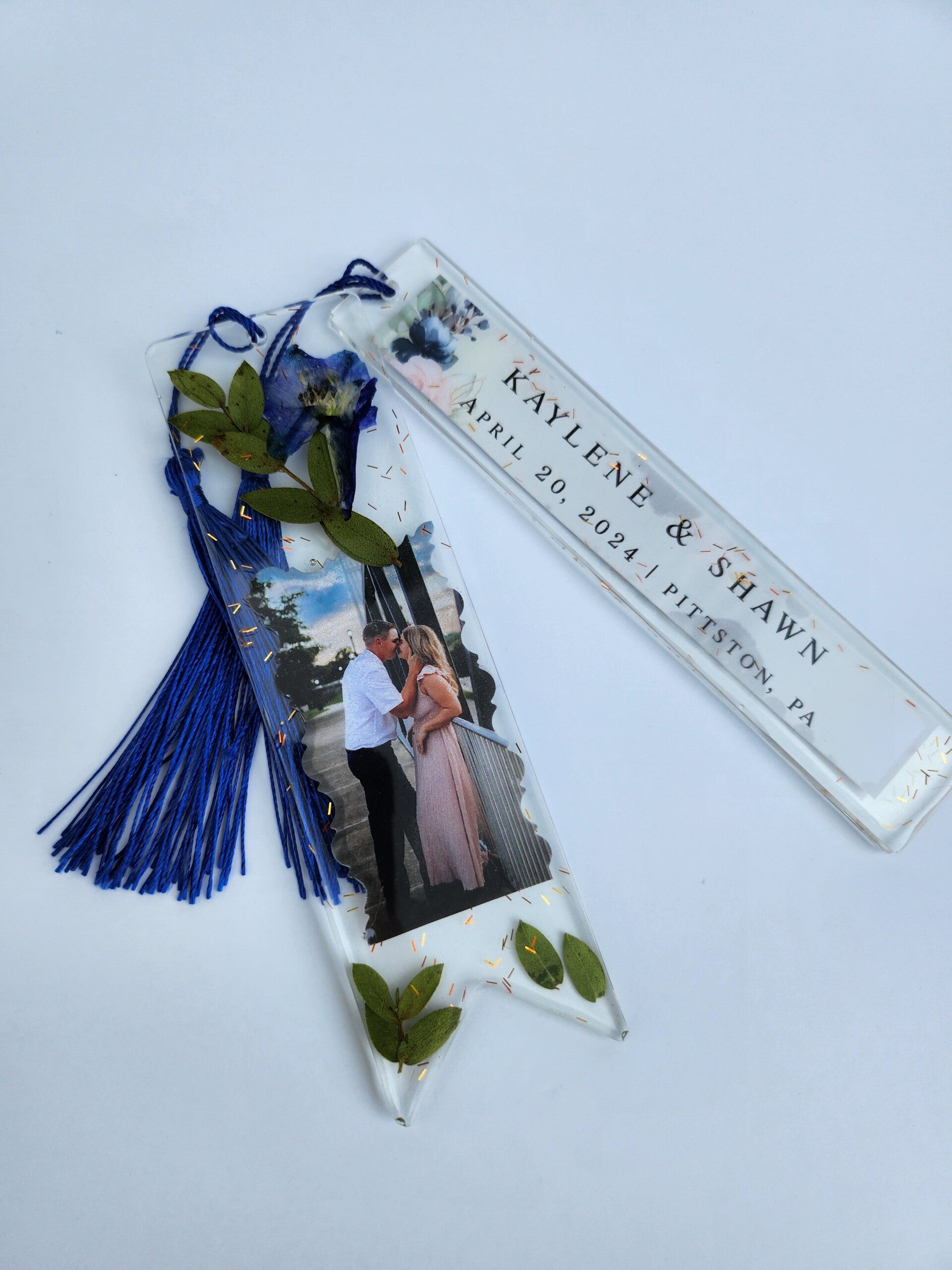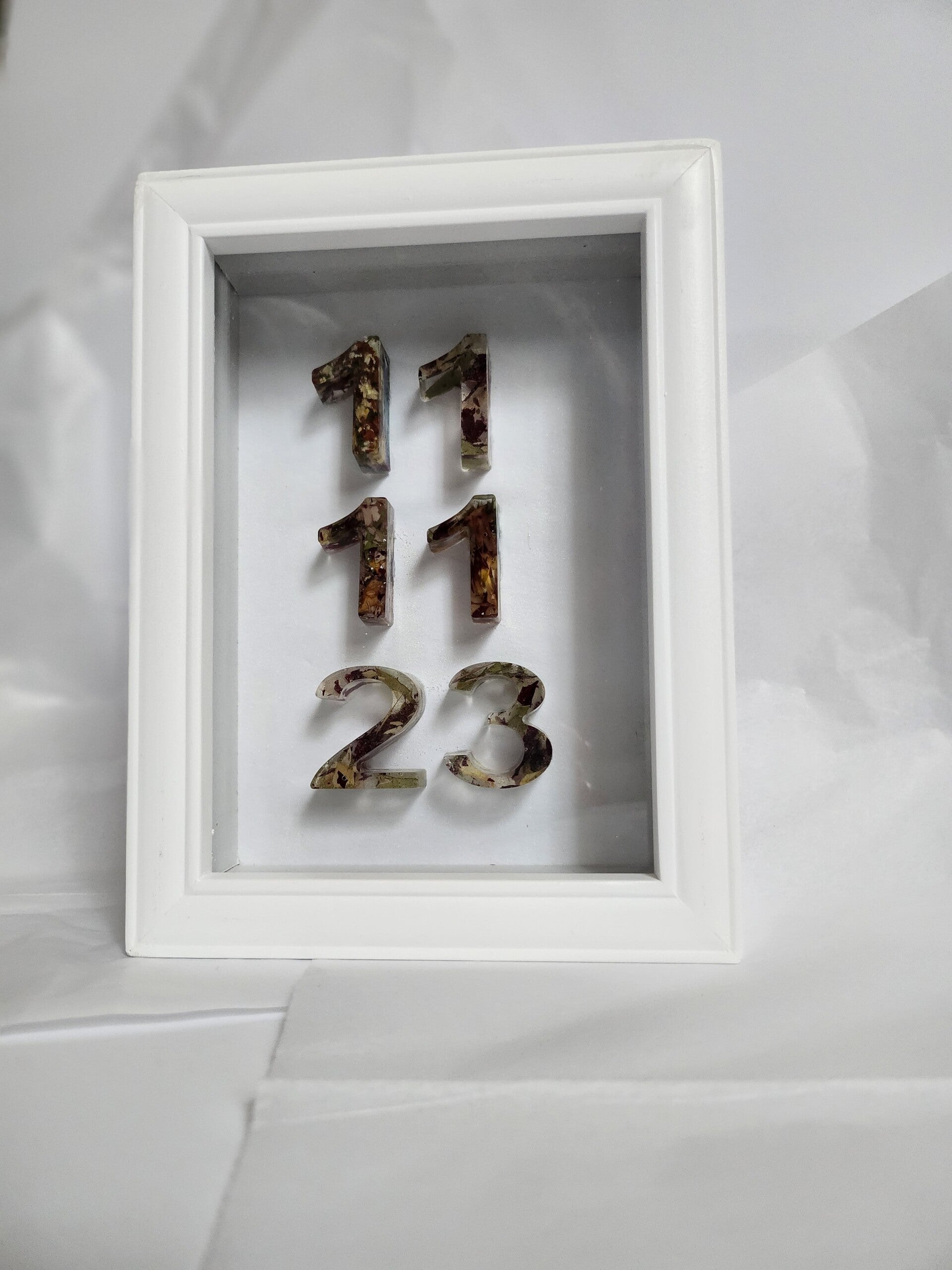 Resin Wedding Date in Frame and Clocks with flat dried flowers!